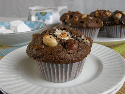 Sift flour, cocoa powder, baking powder and salt into a medium bowl, set aside.